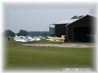 As was the case last year, Mark Frederick flew up from the heart of F1 Rocket country (Taylor, Texas) to meet up with the flyers from Indianapolis. The group met at the new Hendricks County airport (K2R2), which is being built on Indianapolis' west side to replace the old Speedway airport, which closed in December. Our flight director was Tom Utterback, and you can see from the picture that everyone is intently paying attention to his briefing. After a call to Canadian