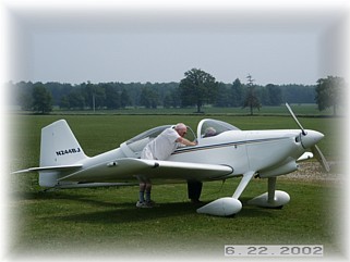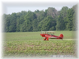 Terry Jantzi bummed this Cub off of a friend and flew down from his home about 60 miles away. He said that it took him over an hour to get there. That'll teach you to sell your RV! (Hey wait a minute, look who's talking!) Peter Noble spent most of the day up in the air in his red Hatz Biplane giving folks a ride in the open cockpit. He contributed greatly to the "air fair" atmosphere.