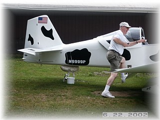 This is our buddy Wayne Ray from Indy with "CowBird". He always gets a bunch of laughs with this set up. You know how we can tell Wayne is in the air with us? He'll key his microphone and ring the cow bell that he keeps in his airplane. |