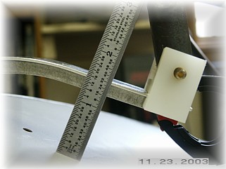 The rear bow is a little tricky to mount because there's few, if any, reference points. I started by bending the bow so that the center of the tubes aligned with the outside edge of the canopy tracks. I then set the center canopy track so that I had the 1/8" measurement called for in the plans.
