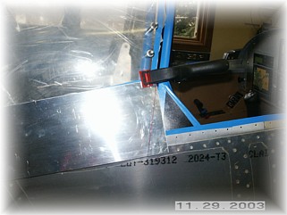 I started work on the side skins and realized that I didn't have the proper flaring tool to bend the side of the skins to meet the Plexiglas. So, I ordered the tool and did as much as I could, a little out of sequence. I trimmed the side skin to match the cut in the end of the Plexiglas. Then, I trimmed the forward fuselage skin to match.
