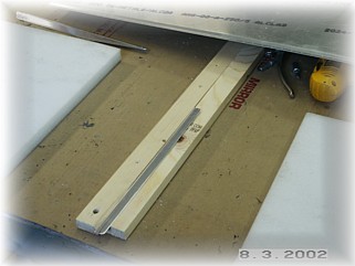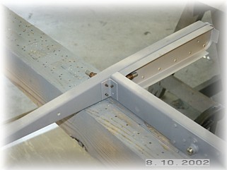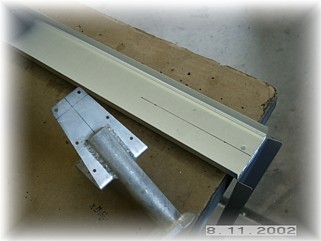 With both of these done, it is time to attach the tip rib to the spar. Again, this is done the same way as the rudder. Attaching the inside rib is a different matter. When you look at the rib, there is a tab on the forward web with a #12 hole in it. It is a tooling hole/tab used to form the rib. From what I can gather from the F1 Builders List, you are supposed to just cut this tab off and fit the rib to the rudder horn assembly after the rudder horn is mounted to the elevator spar. However, the problem I see with that approach is the difficulty in getting the horizontal plane of this rib correctly set with regard to the rudder horn and with regard to the spar, and most importantly, with regard to the other elevator. There are two alignments that are important to get right when building the elevators. One, you must get the elevator horns aligned with the centerline of the spar. If you don't, the horns will bind up with the center bearing when the elevators are deflected. Second, you want both horns to align with one another when both elevators are at the same deflection angle. If they aren't aligned properly, then the horns will not hit the elevator stops at the same time. So, I developed my own technique for getting all of this correct.