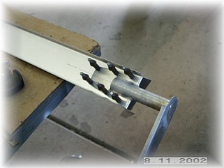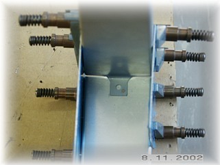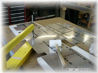 Now it's time to set up the backing plate and rivet the stiffeners on. Very light gun pressure works best as it is easy to over set these rivets.