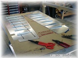 First step in assembling the elevators is to gather up all the parts and lay out the stiffeners.