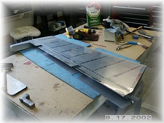 The skins are dimpled on the table using the C-frame tool.