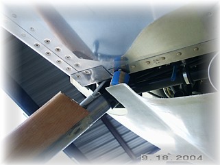 I removed the top cowl and mounted the bottom cowl to the cowling tool. I trimmed out around the gear legs to allow the bottom cowl to fit. Initially, I was having trouble getting the bottom cowl to fit until I noticed that the bottom cowl does not fit tight against the bottom skin. The pictures in the manual show an older version of the cowl. I found this out by looking at the upper gear leg fairings. I discovered that there is a 1 inch gap in the lower cowl. I made a spacer using some washers and clamped the lower cowl in place. I left the sides long at this point because the proper forward and aft location cannot be accurately determined until the cowls are hinged together.