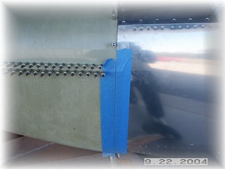 I removed all the tape except the last one and trimmed the cowl using my cut-off disk. The result is a perfect fit. Although I don't have a picture of it, I drilled the top cowl to the mounting flange using a 3 1/2 inch spacing. I found his spacing to be perfect in missing the corner of the engine mount and lining up with the top center of the cowl. I only drilled the holes #40 at this point. They will be drilled up to #30 after the fiberglass lay ups are applied because the fiberglass will screw up the hole alignment slightly. The mis-alignment can be corrected when the holes are drilled up in size. This positions the top cowl as the reference point for mounting the bottom cowl and for cutting the sides.
