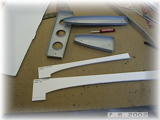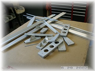 The first step in building the horizontal stabilizer is to gather all the parts together. I'll assemble the rear spar first, then the front spar. Then I'll assemble the skeleton in the jig and drill the skins. Finally the skin will be riveted to the skeleton.