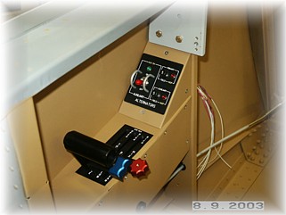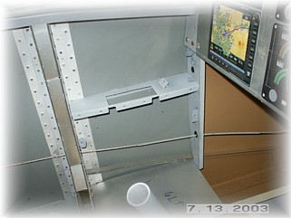 I mounted the side cover with some screws. This will allow me to gain access to the turnbuckles on the linkages. I also made a little angled cover that goes in front of the quadrant. I plan to use this space for my alternator switch and circuit breakers. I am planning a dual alternator system so I need a switch for the auxiliary alternator as well as indicators and circuit breakers for both alternators.
