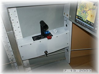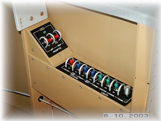 Like the left side throttle quadrant, I made up a couple of covers that I can use to mount all my electrical switches. I made the top of the panel so that it is mounted permanently. The side of the panel and the small triangular switch panel are made to come off with screws.