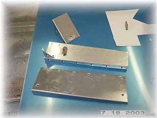 Once I had the throttle located on the side of the fuselage, I fabricated a top cover plate. Actually, I bent one so that it was the top and side all in one piece but I discovered that with this style of quadrant, I couldn't get a cover over the top of the handles. So I had to go to plan B. Since the cover must be removable, I decided to permanently mount the top cover and make the side cover removable. This made the overall installation a little more complicated than I had originally envisioned, but that happens sometimes. Once the cover was finished, I riveted it to the side skin of the fuselage.