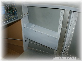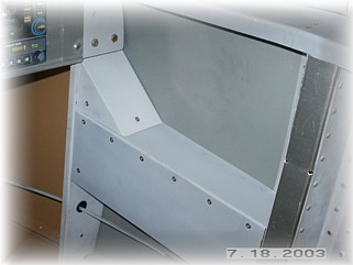 I attached the forward floor panels with screws and nut plates because I'll need access to the area underneath to put the bolts into the spar. I thought about putting a door on top of the panel but decided not to because with a slider canopy, it is difficult to reach these panels without standing on top of your head.