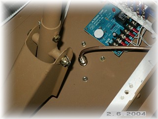 I mounted my bent whip Comm antenna on the centerline of the bottom of the fuselage, just forward of the front stick. This keeps it far enough from the landing gear that reception shouldn't be a problem. My NAV antenna is in the left wing tip and the transponder antenna will be mounted on a plate inside the engine compartment on the bottom of the cowl.