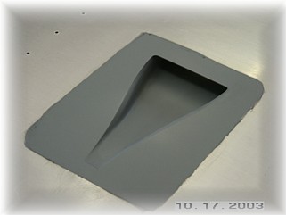 I installed the NACA inlet with Proseal. After it dried, I filled the edges with body filler and sanded them smooth. A little primer was all that was needed to finish it up.